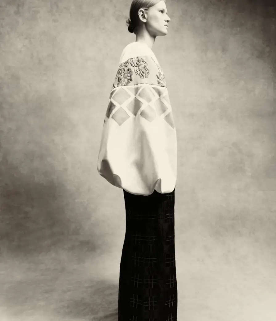 Бренд Alena Akhmadullina представил свою новую коллекцию под названием «Белогорье», вдохновленную народно-художественными промыслами Белгородской области. Главным источником вдохновения для дизайнеров стал уникальный орнамент региона - «черноузорная вышивка». Этот геометрический паттерн, имеющий корни в древней культуре славян, послужил основой для создания принтов и вышивок в коллекции.