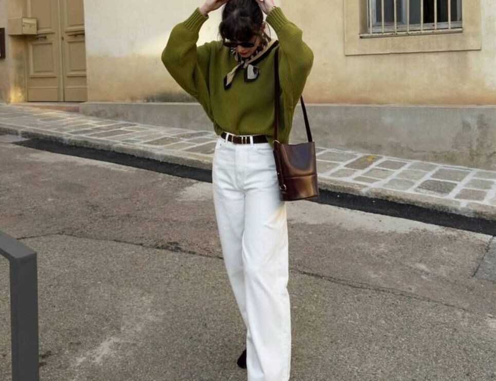 Как же сочетать эти необычные оттенки денима? Француженки предпочитают нейтральные тона в верхней части одежды — белые, серые или бежевые. Это позволяет джинсам стать центром внимания, не перегружая образ. Аксессуары тоже лучше выбирать в спокойных тонах, чтобы не создавать диссонанс.
